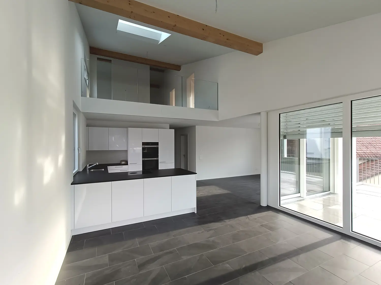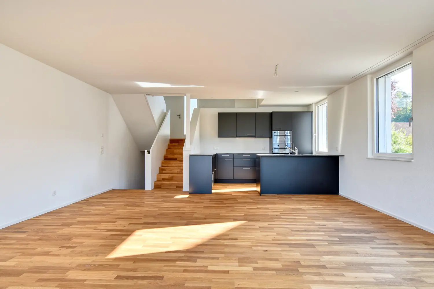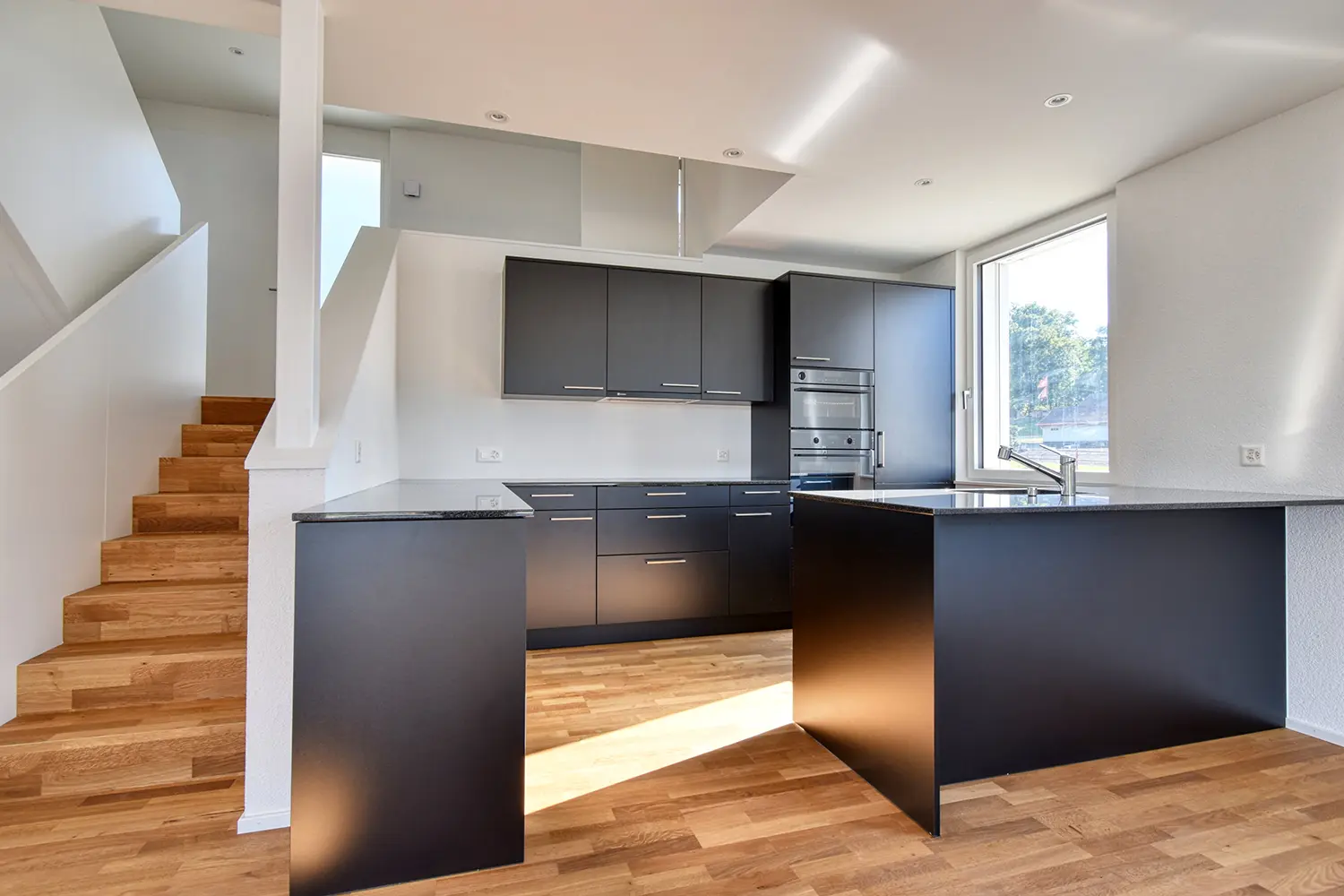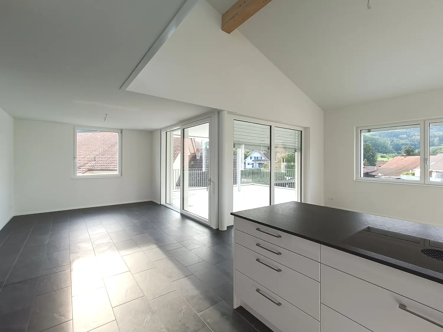 Am nördlichen Siedlungsrand von Schupfart, in leichter Hanglage, liegt die ansprechende Überbauung „4 Linden“, bestehend aus einem Mehrfamilienhaus mit 2 Wohnungen, verteilt auf 2 Etagen, sowie einem Doppeleinfamilienhaus und bietet somit ein Zuhause für Alt und Jung. Beide Gebäude sind durch eine gemeinsame Tiefgarage erschlossen, welche sich, dank der direkten Zufahrt ohne Rampe, nahtlos in die Umgebung einfügt. Die Gegebenheiten vor Ort wurden optimal genutzt. So wurde die Überbauung beispielsweise durch das neu entstehende Fernwärmenetz erschlossen. Die Planung dafür erfolgte in enger Zusammenarbeit mit dem AEW und die Anlage kann 2024 erfolgreich in Betrieb genommen werden. Auch der Innenausbau wurde schlicht und modern gestaltet und wirkt auch in Kombination mit den individuellen Käuferwünschen zeitlos und elegant.