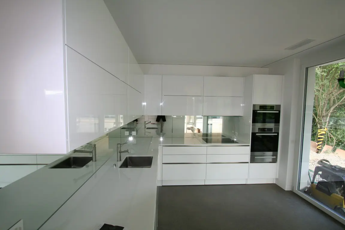 Das Einfamilienhaus am Frickberg mit Hanglage ist südwestlich ausgerichtet und bietet mit raumhohen Fenstern und einer grossen überdachten Terrasse einen erstklassigen Ausblick über das gesamte Tal. Das Gebäude ist nach Minergie®-Standard gebaut und mit einer Luft/Wasser-Wärmepumpe ausgestattet. Das Wohnzimmer und die Küche sind im Erdgeschoss angeordnet, die Schlafzimmer befinden sich im Sockelgeschoss. Auf dem Dach ist eine Solaranlage zur Erwärmung des Poolwassers und als Heizungsunterstützung installiert.