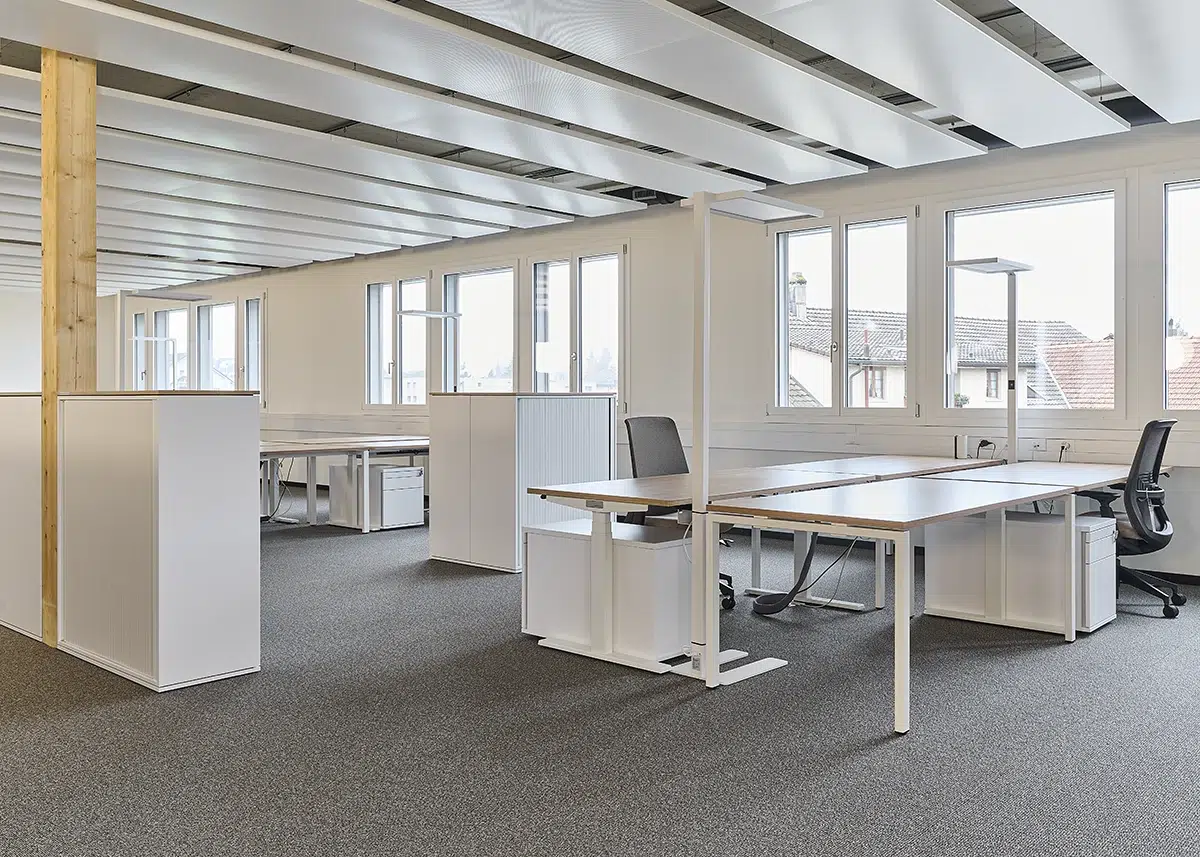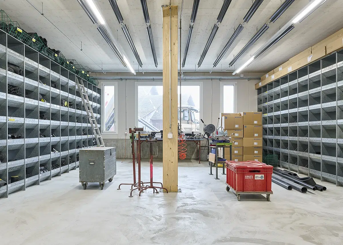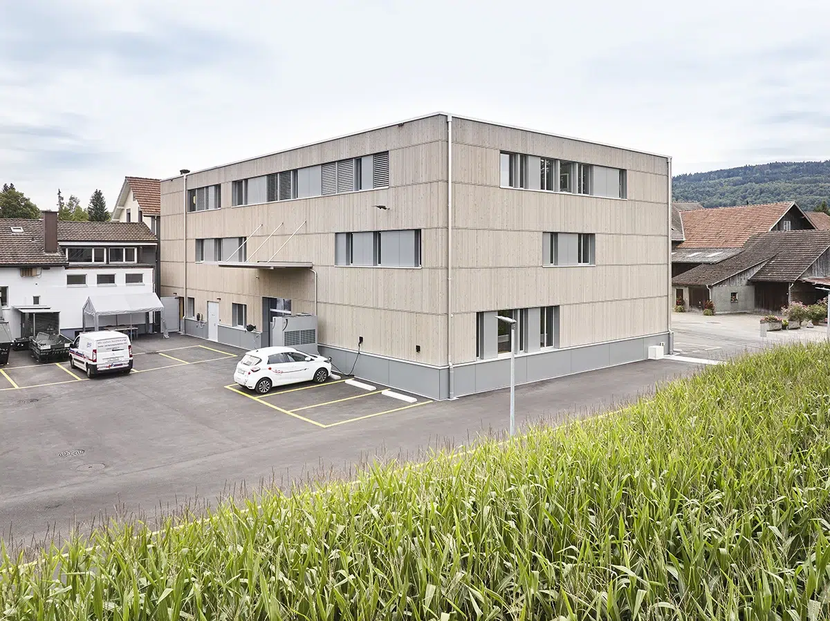 Der Neubau der Eichenberger Gebäudetechnik AG ersetzt ein baufälliges Lagergebäude und bündelt sämtliche Betriebsnutzungen in einem neuen, dreigeschossigen Gebäude. Eine Holzbauweise mit moderner Gebäudetechnik und Photovoltaikanlage ermöglicht eine effiziente Nutzung bei kurzer Bauzeit.