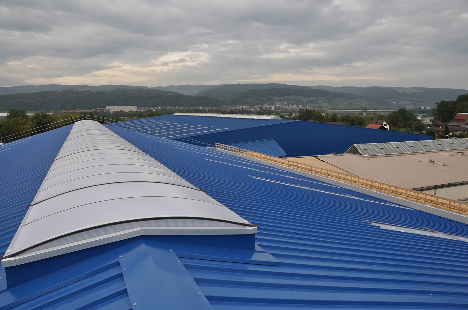Mit dem Teilabbruch bestehender Hallen und dem Neubau der Halle 4 wird das Areal konsequent weiterentwickelt. Der Ersatzneubau knüpft in Form und Funktion an die bestehenden Hallen an, integriert bestehende und zukünftige Verkehrsbeziehungen und ergänzt die Anlage durch einen vorgelagerten zweigeschossigen Büroneubau in Holzbauweise.