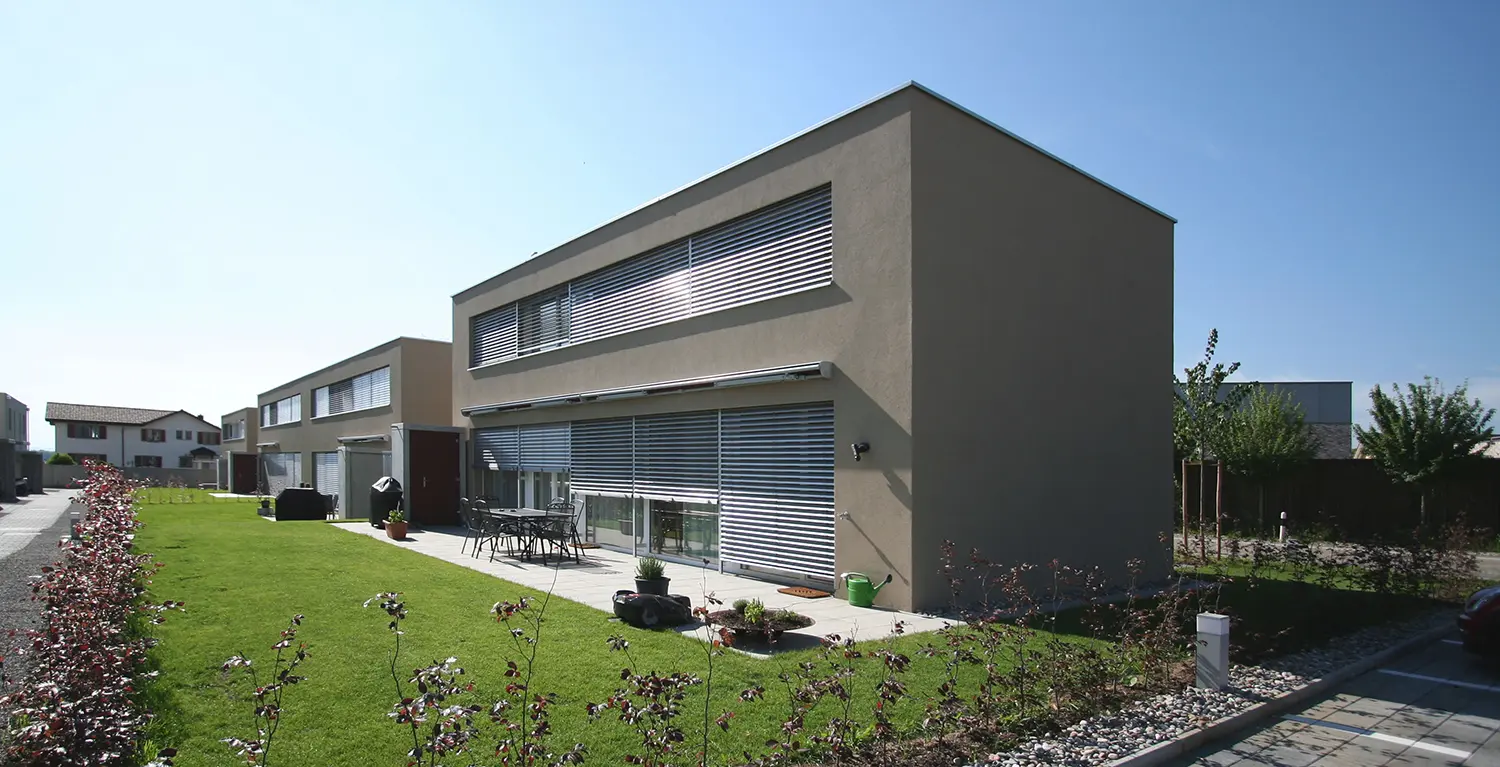 In einem von Einfamilienhäusern geprägten Quartier entstand eine moderne, preislich attraktive Familienhaus-Siedlung mit insgesamt 12 Einheiten.