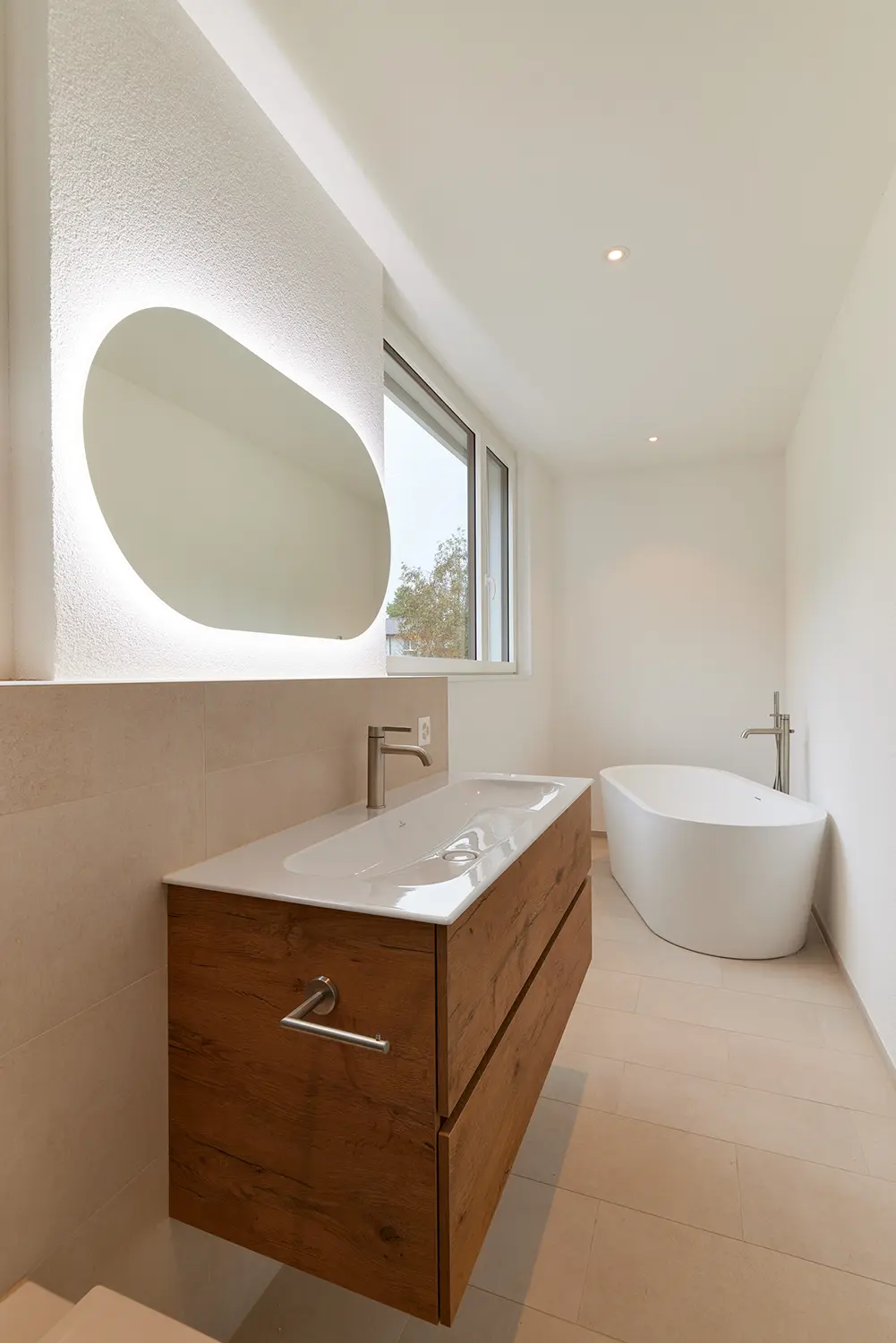 Im langen Hag in Liestal entsteht die Überbauung „Langhag“ mit drei freistehenden Einfamilienhäusern und zwölf Reihenhäusern. Die Hanglage bietet nicht nur eine atemberaubende Aussicht, sondern auch eine optimale Nutzung des Raums. Die Häuser sind modern und nachhaltig, mit großzügigen Aussenbereichen und einer Erdwärmeheizung. Ein Spielplatz und ein geschützter Zugangsweg schaffen ein familienfreundliches Umfeld, ideal für junge Bewohner.