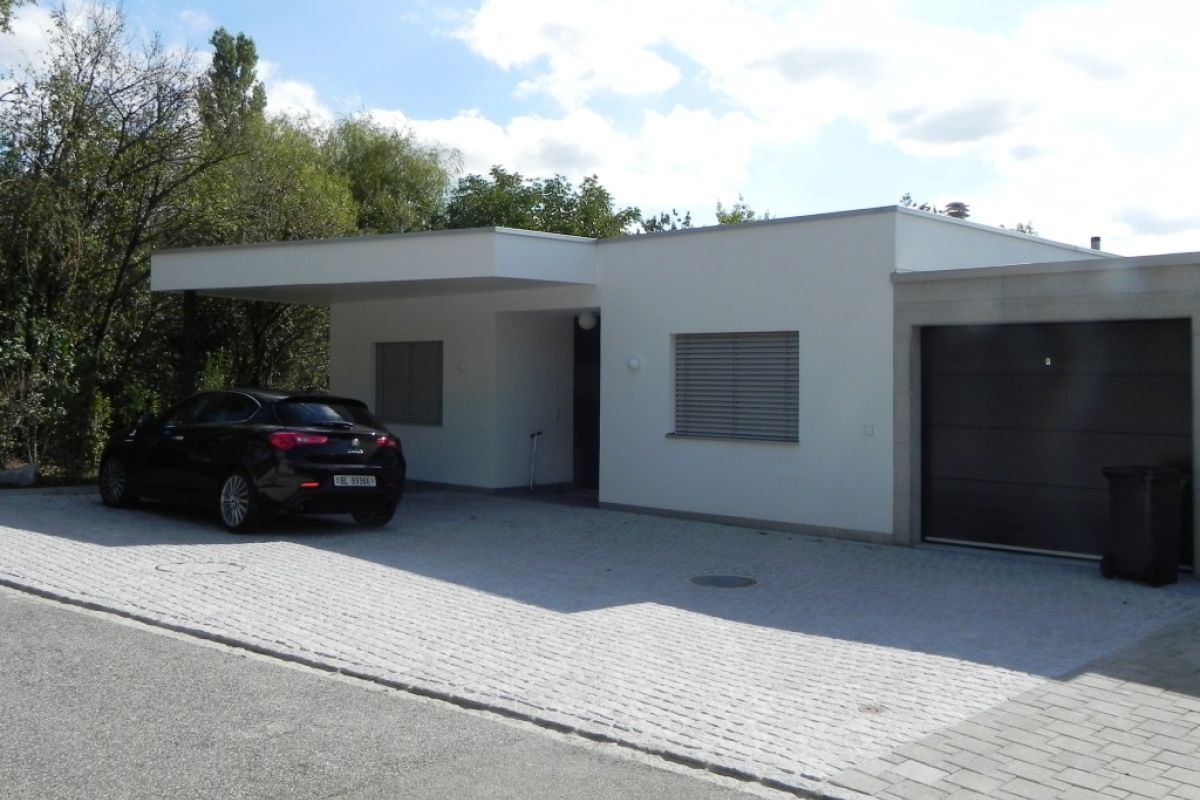 Das Einfamilienhaus am Frickberg mit Hanglage ist südwestlich ausgerichtet und bietet mit raumhohen Fenstern und einer grossen überdachten Terrasse einen erstklassigen Ausblick über das gesamte Tal. Das Gebäude ist nach Minergie®-Standard gebaut und mit einer Luft/Wasser-Wärmepumpe ausgestattet. Das Wohnzimmer und die Küche sind im Erdgeschoss angeordnet, die Schlafzimmer befinden sich im Sockelgeschoss. Auf dem Dach ist eine Solaranlage zur Erwärmung des Poolwassers und als Heizungsunterstützung installiert.